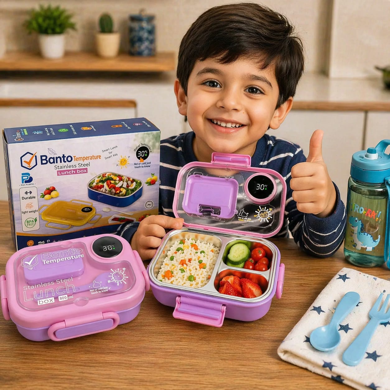 Keep your meals fresh and at the right temperature with this Bento Temperature Stainless Steel Lunch Box. Designed with multiple compartments and insulated stainless steel interior, it helps maintain food warmth while keeping different items separated. Perfect for school, office, and travel use.