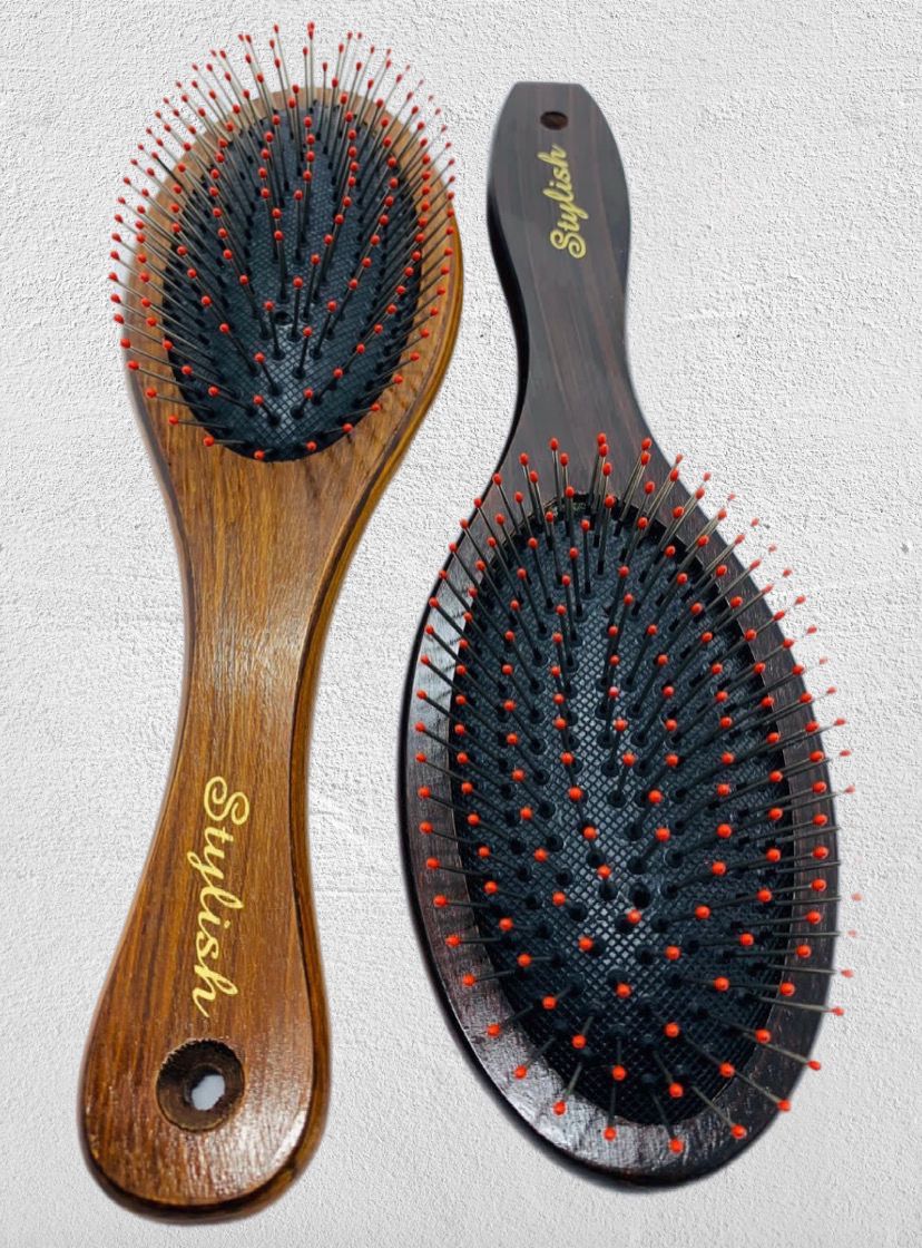 Stylish Wooden Hair Brush ek premium quality grooming tool hai jo natural wood se bana hota hai aur baalon ki health ko improve karta hai. Yeh brush baalon ko softly detangle karta hai bina breakage ke, aur scalp par gentle massage provide karta hai jo blood circulation ko better banata hai.