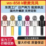 Portable WS-858 Bluetooth microphone with HiFi speaker, perfect for karaoke, parties, and entertainment.